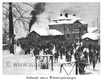 Die Züge waren bei gutem Wetter stets gut besetzt. Besonders eindrucksvoll war es, wenn an Sonntagen die Reichsbahn Wintersportsonderzüge nach Wüstewaltersdorf einsetzte. Da kamen sie im Schlesiertal heraufgekeucht, vorn und hinten eine Dampflok, dazwischen eine lange Reihe von Wagen, oder Doppel-Loks vor dem Zug. Breslau, Schweidnitz, Striegau waren die Ausgangsbahnhöfe, "von oben" kam oft auch noch ein Zug aus Waldenburg.